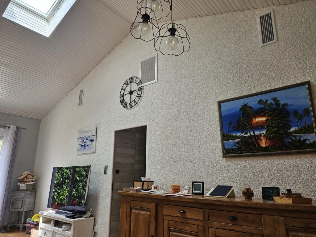 Les grilles de soufflage et de reprise, en aluminium au design discret, ont été sélectionnées pour leur capacité à s’intégrer à la texture du mur enduit. J’ai réalisé des finitions soignées : traitement des bordures d’ouverture, réparation éventuelle de micro-éclats… L’intégration devient ainsi quasiment invisible.